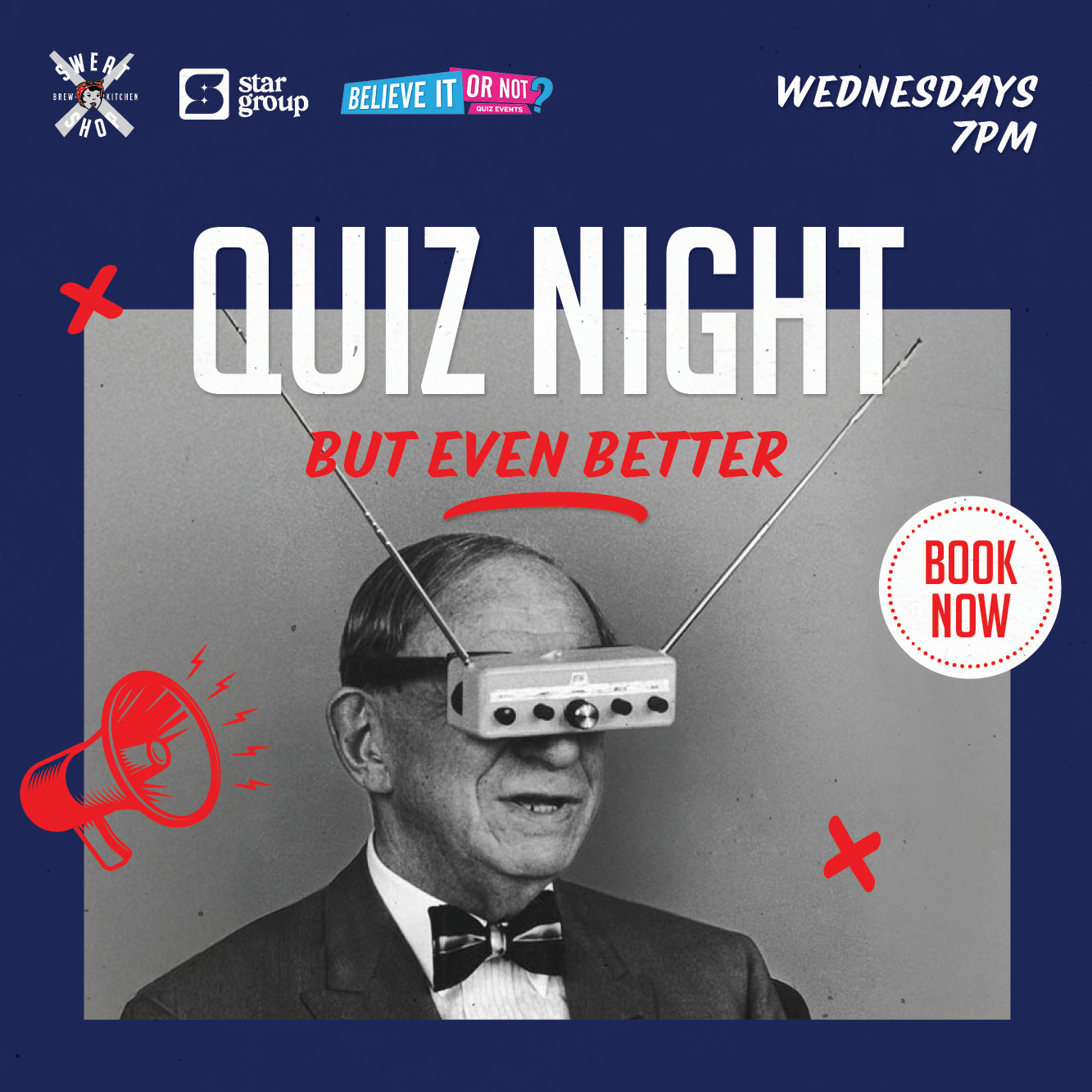 It’s your weeknight quiz fix with big prizes, cheeky questions, and proper team glory. Bring your mates, bring your brains (or not) – just don’t miss this.